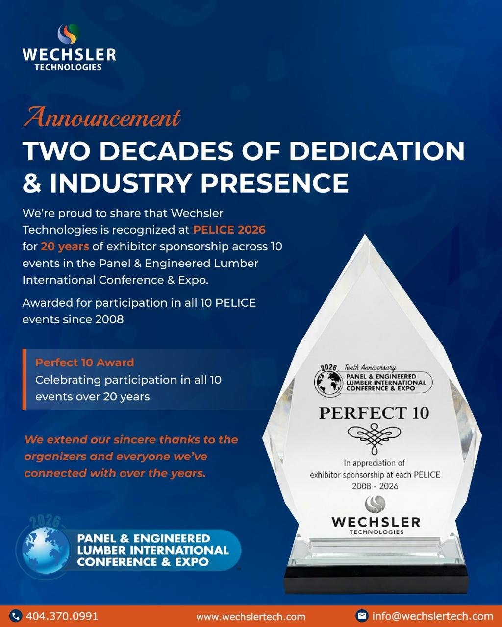 The PELICE Tradeshow brought together leaders from across the panel and engineered lumber industry, creating a high-energy environment focused on innovation, safety, and operational efficiency. We are proud to have been recognized with the “Perfect 10” Award, marking 10 years of continuous participation and contribution to the industry.
